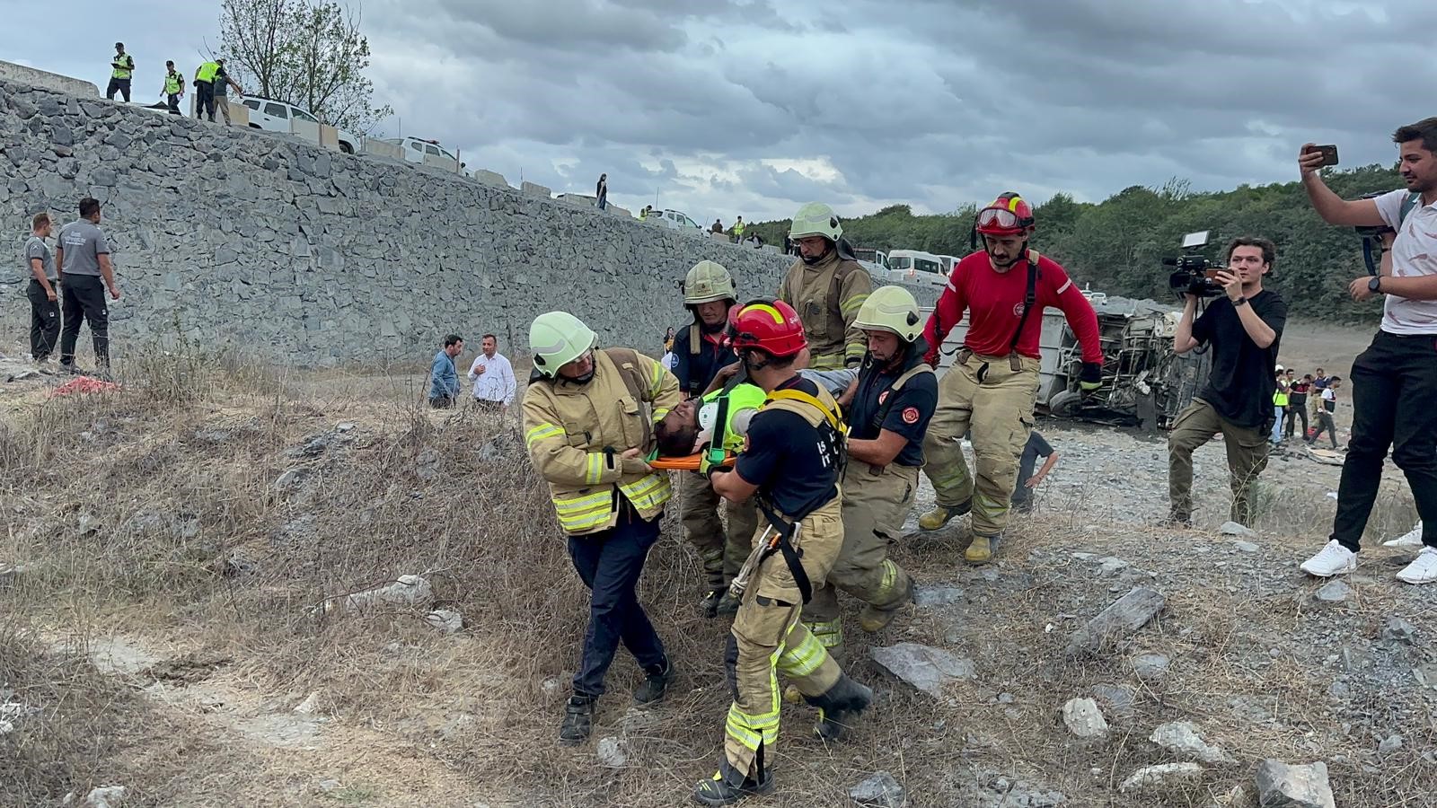 Kemerburgaz da otobüs devrildi Çok sayıda yaralı var