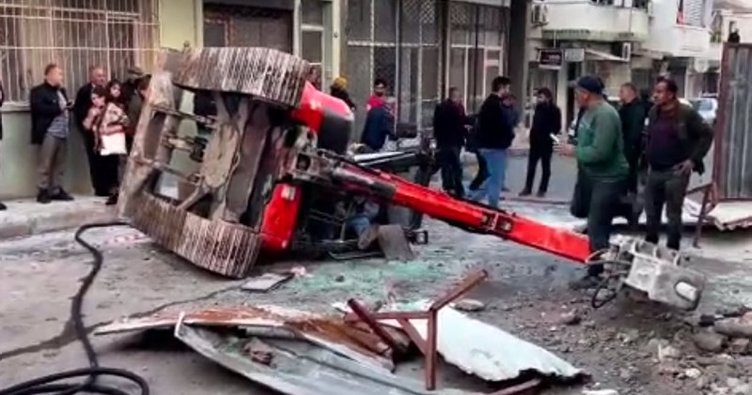 İzmirde iş makinesi 3 kattan düştü faciadan dönüldü