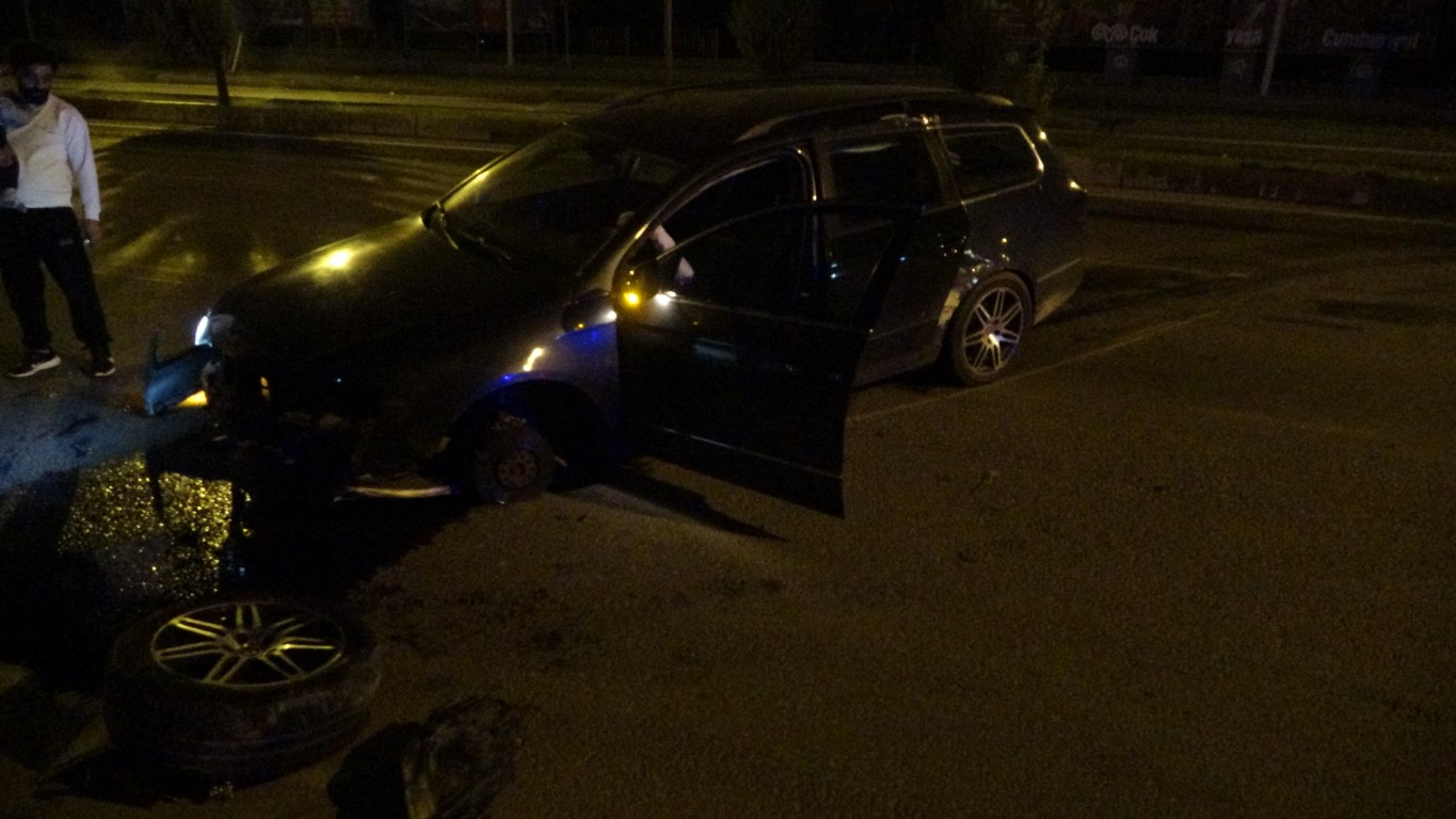 Kontrolden çıkan araç refüje çarpıp karşı şeride geçti