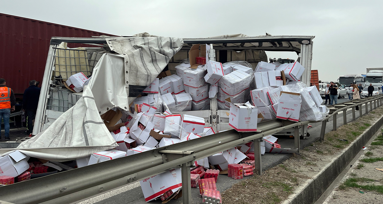 TEMde zincirleme kaza 3 tır birbirine girdi 1 kişi yaralandı