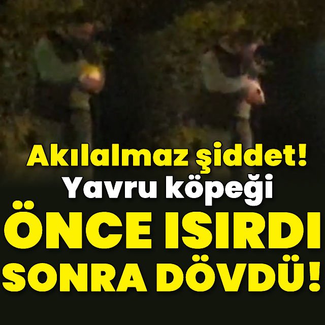Kucağındaki yavru köpeği ısırıp, döverken görüntülendi