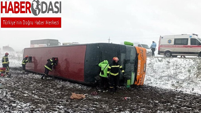 Ukraynada yolcu otobüsü kaza yaptı 18 yaralı
