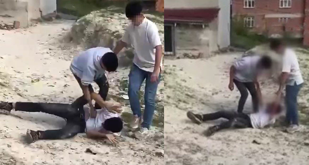 Sokak ortasında 2 çocuk bir diğer çocuğa acımasızca saldırdı