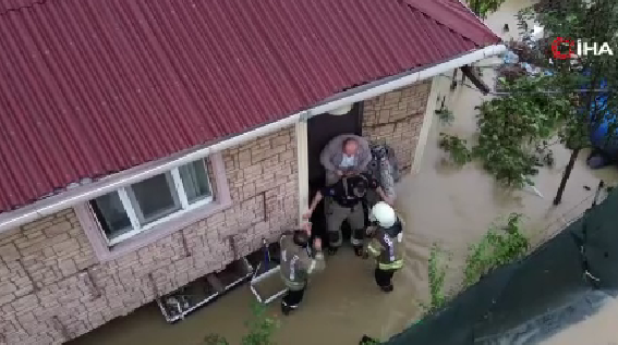Arnavutköyde evinde mahsur kalan adamı itfaiye ekipleri sırtında taşıyarak kurtardı
