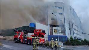 Arnavutköyde fabrika bahçesindeki yakıt tankeri alev alev yandı