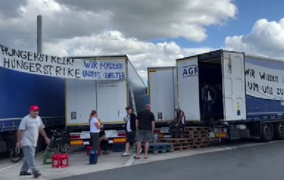 Almanyada aralarında bir Türkün de bulunduğu 85 tır şoförü açlık grevinde