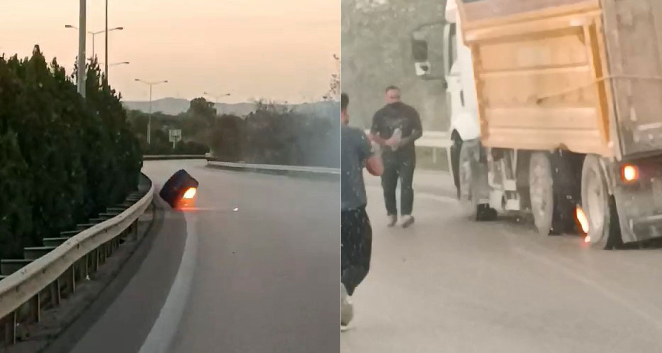 Seyir halindeki kamyonun tekerleği uçtu facianın eşiğinden dönüldü