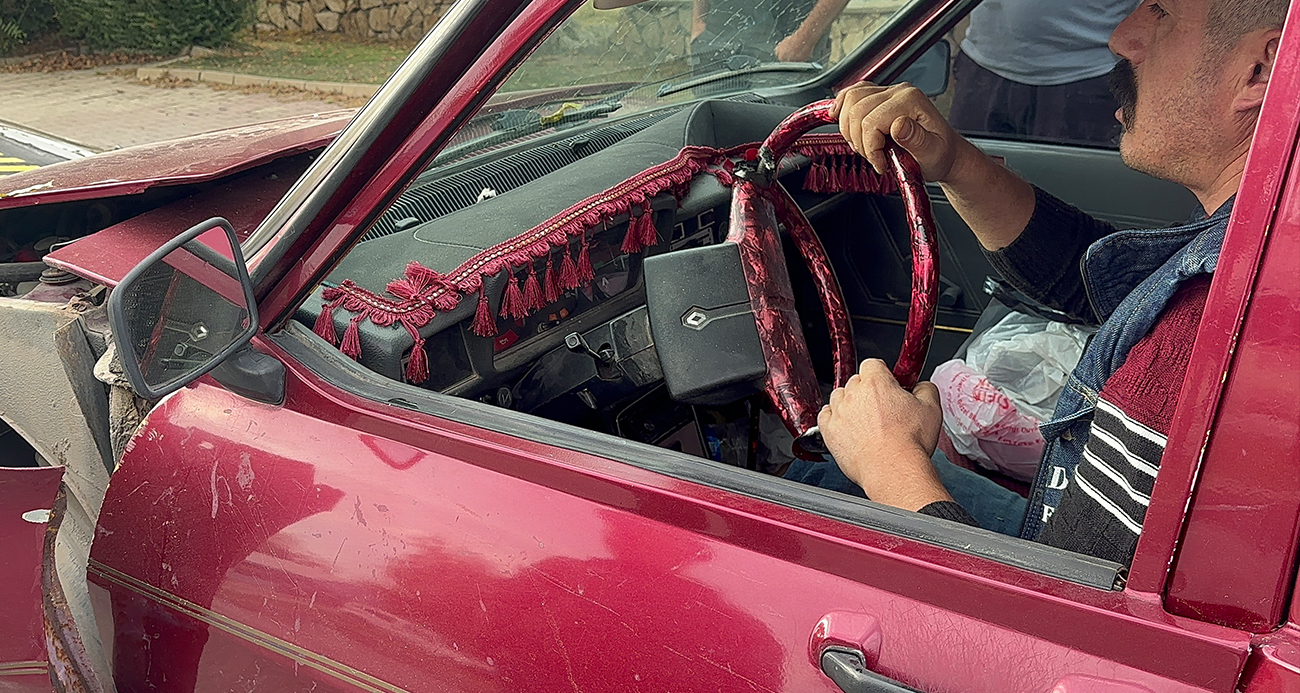 Elazığda ilginç kaza Aracın direksiyonu kırıldı