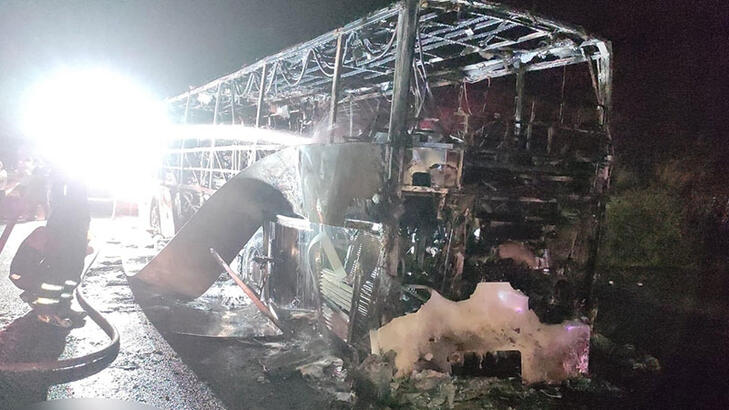 Osmaniyede seyir halindeki yolcu otobüsü alev alev yandı