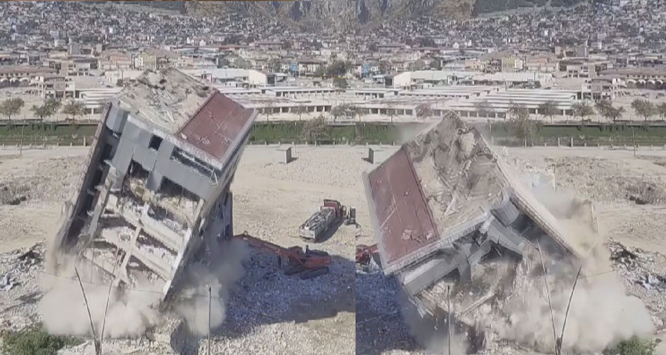 Hatayda kontrollü yıkılan 5 katlı bina kağıt gibi yerle bir oldu